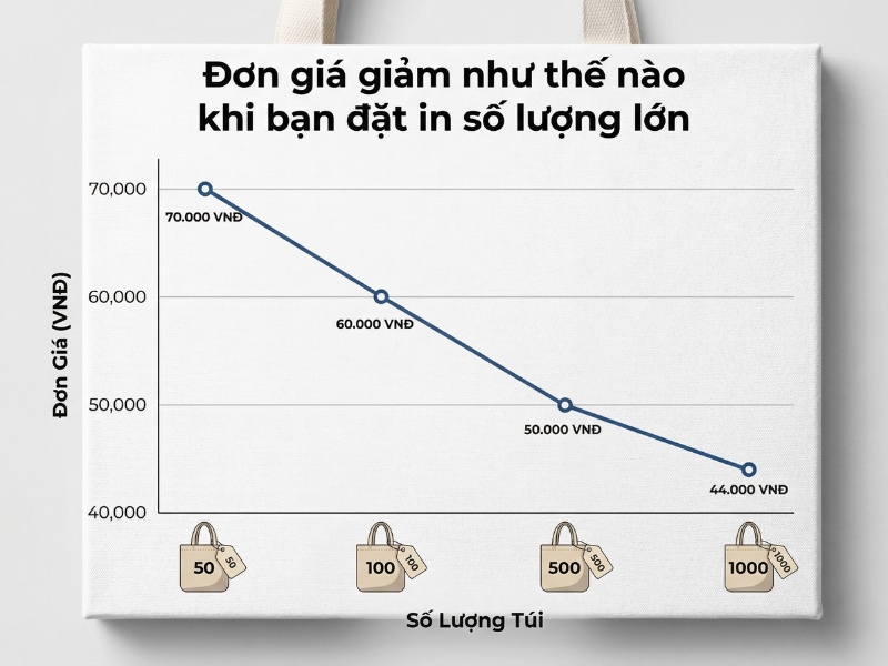 Biểu đồ phân tích mối quan hệ giữa đơn giá và số lượng đặt hàng túi vải in logo
